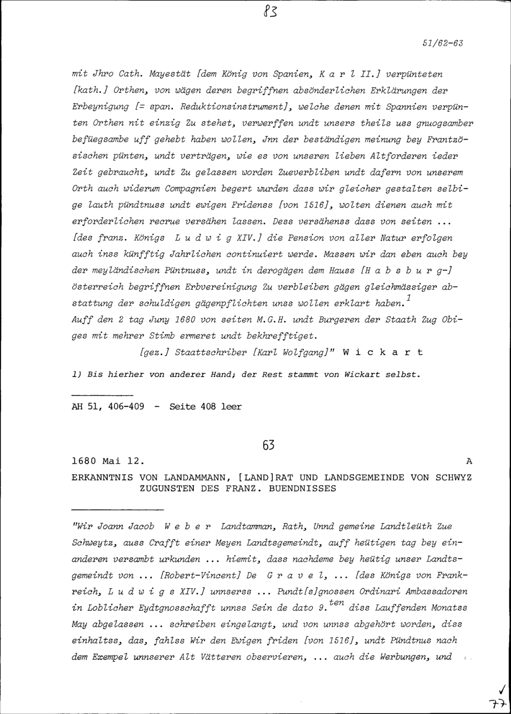 Beschluss des Ammanns, Rats und der Gemeinden von Stadt und Amt Zug beziehungsweise des Ammanns (Stabführers), Rats und der Bürger der Stadt Zug zugunsten des französischen Bündnisses