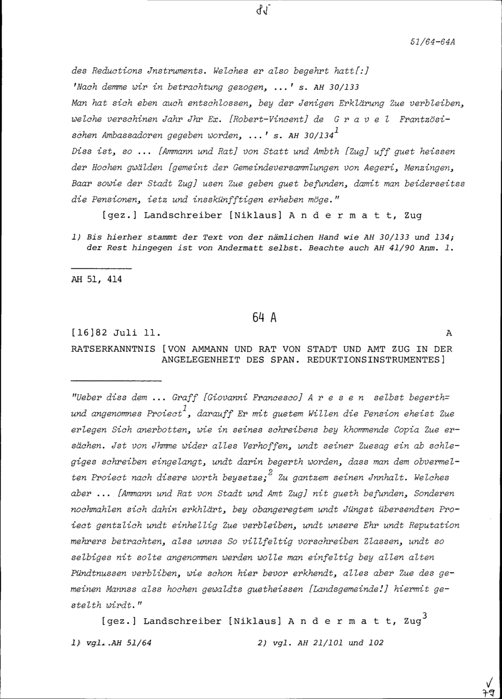 Erklärungen des Ammanns und Rats von Stadt und Amt Zug bezüglich der Bündnisse mit Mailand-Spanien und Frankreich
