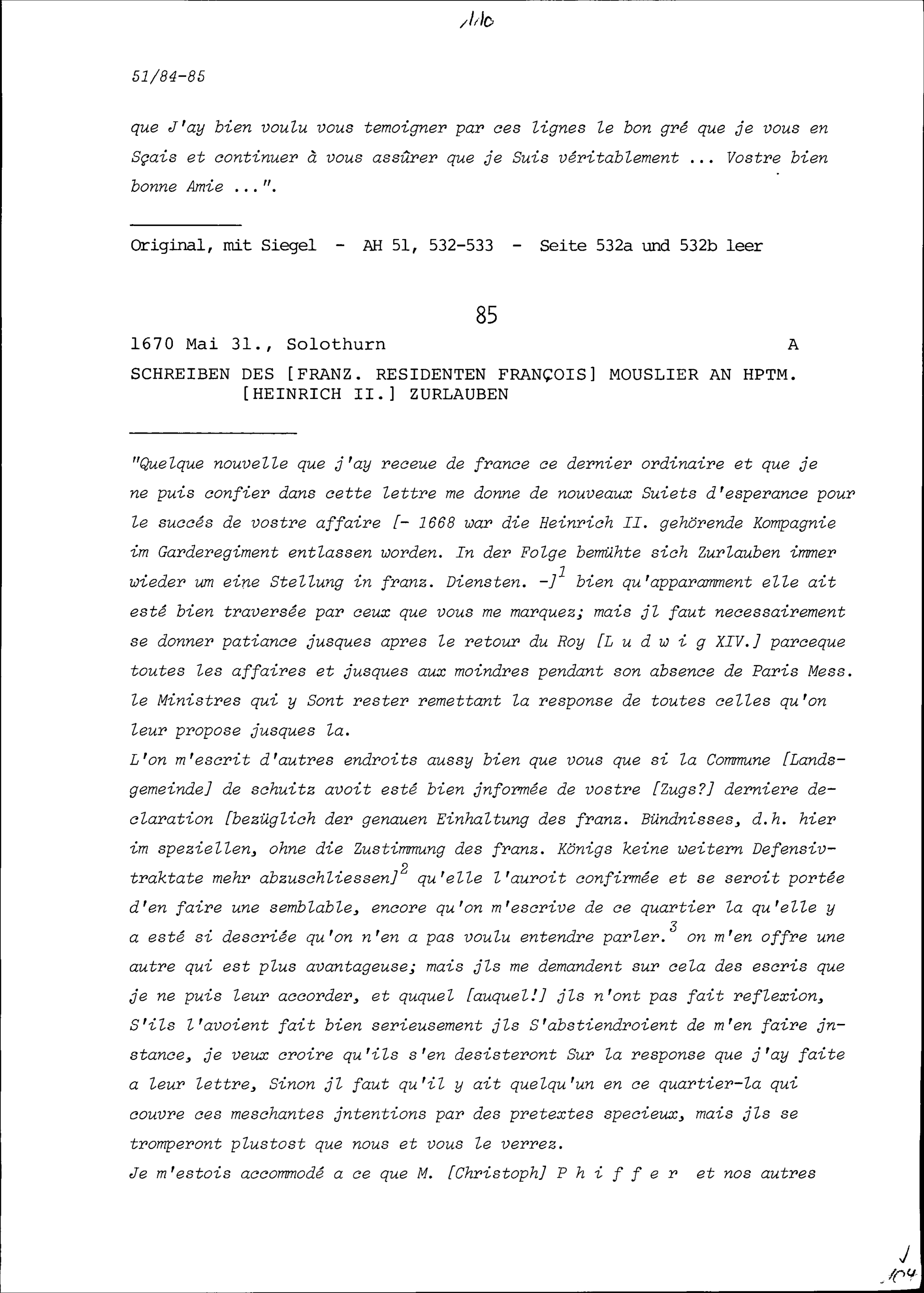 Schreiben von Marie-Jeanne-Baptiste, Regentin und Herzogin von Savoyen, an Beat Kaspar Zurlauben, Bremgarten