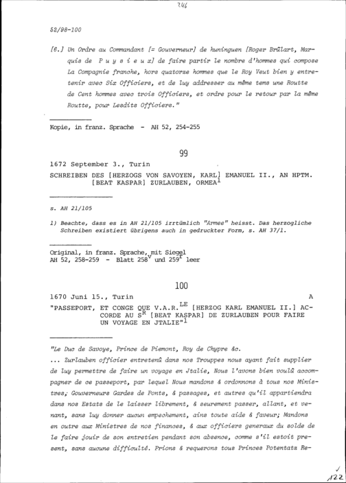 Passeport von Beat Kaspar Zurlauben für eine Reise nach Italien