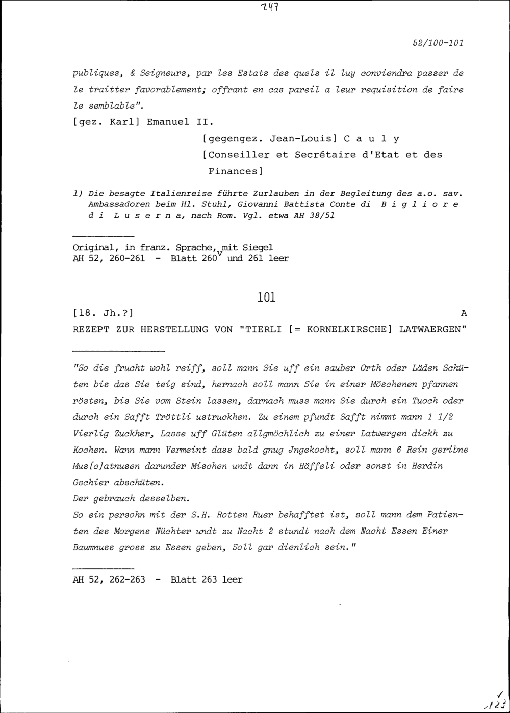 Passeport von Beat Kaspar Zurlauben für eine Reise nach Italien