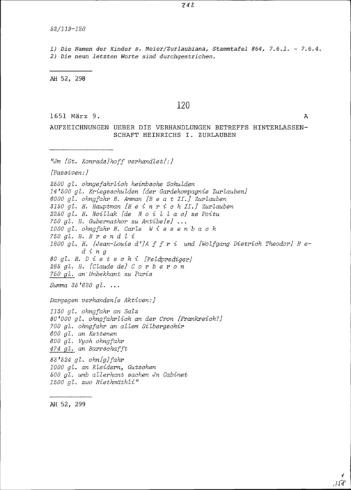 Notiz von Beat II. Zurlauben zur Vollmachterklärung für Heinrich II. Zurlauben, Gardehauptmann, in Zusammenhang mit der Hinterlassenschaft von Heinrich I. Zurlauben, Gardehauptmann