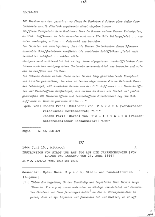 Abmachung zwischen der oberösterreichischen Hofkammer zu Innsbruck und den Fünf Orten Zürich, Bern, Luzern, Basel und Solothurn wegen Salzlieferungen
