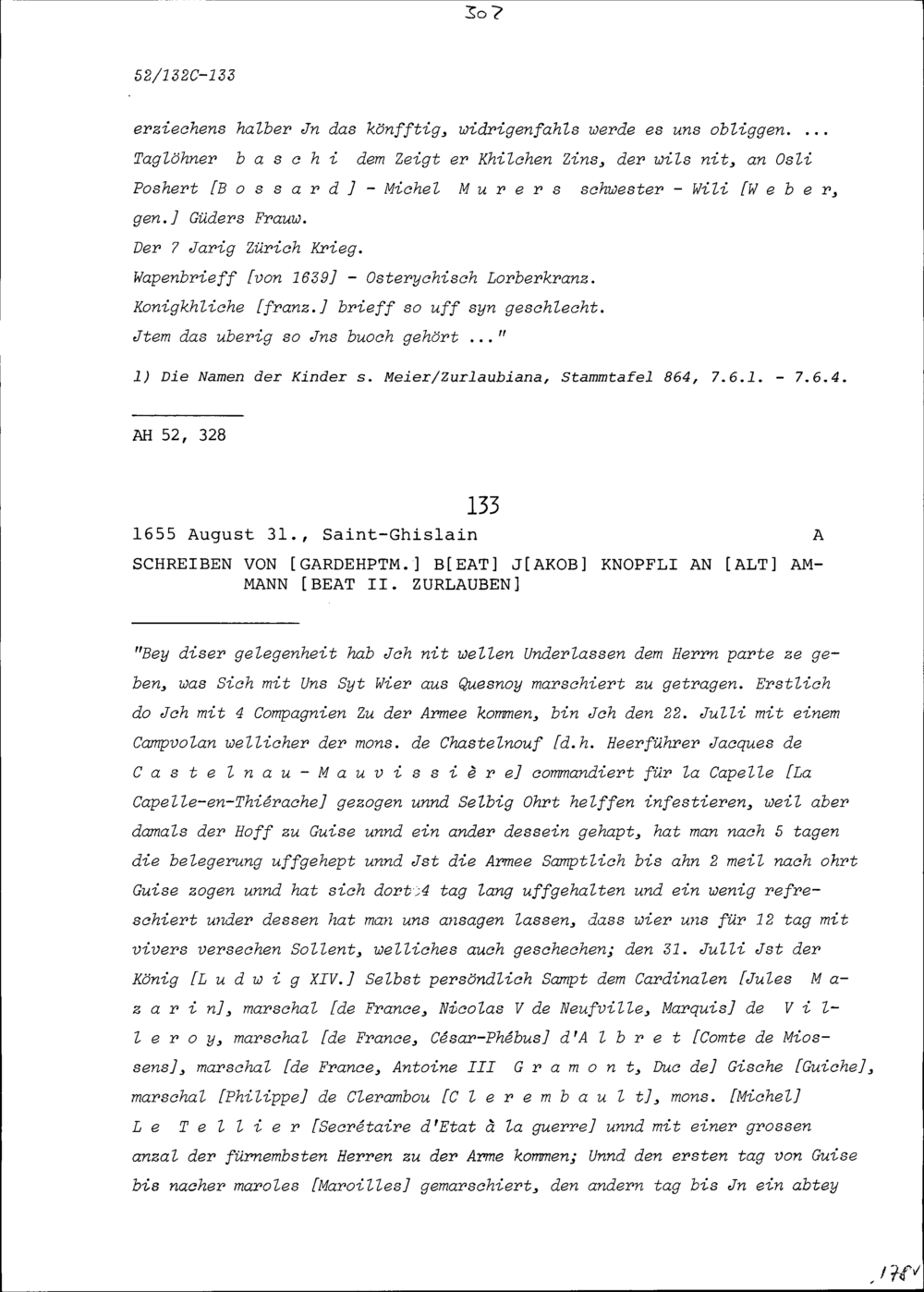 Notiz von Beat II. Zurlauben über die Hinterlassenschaft von Heinrich I. Zurlauben