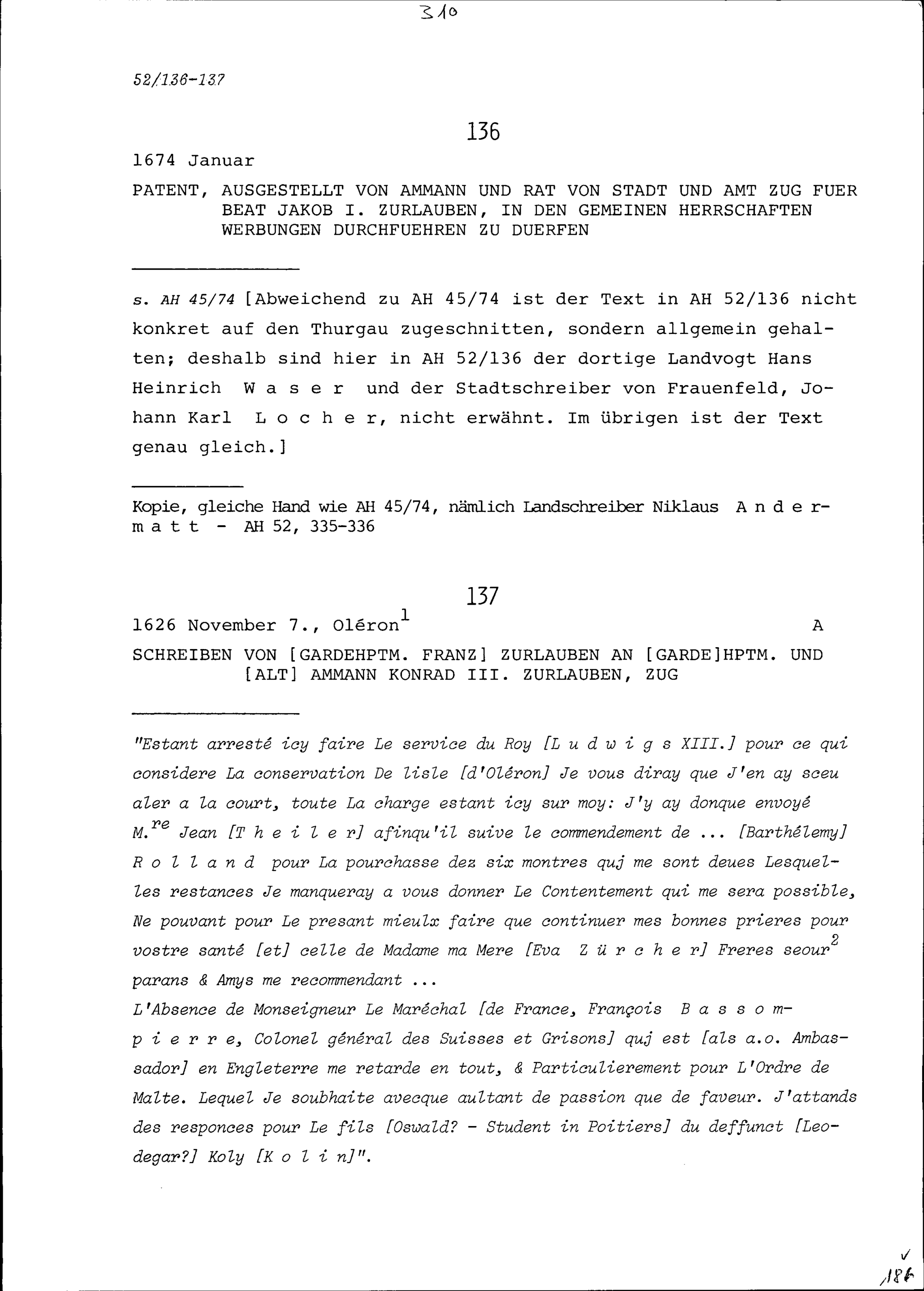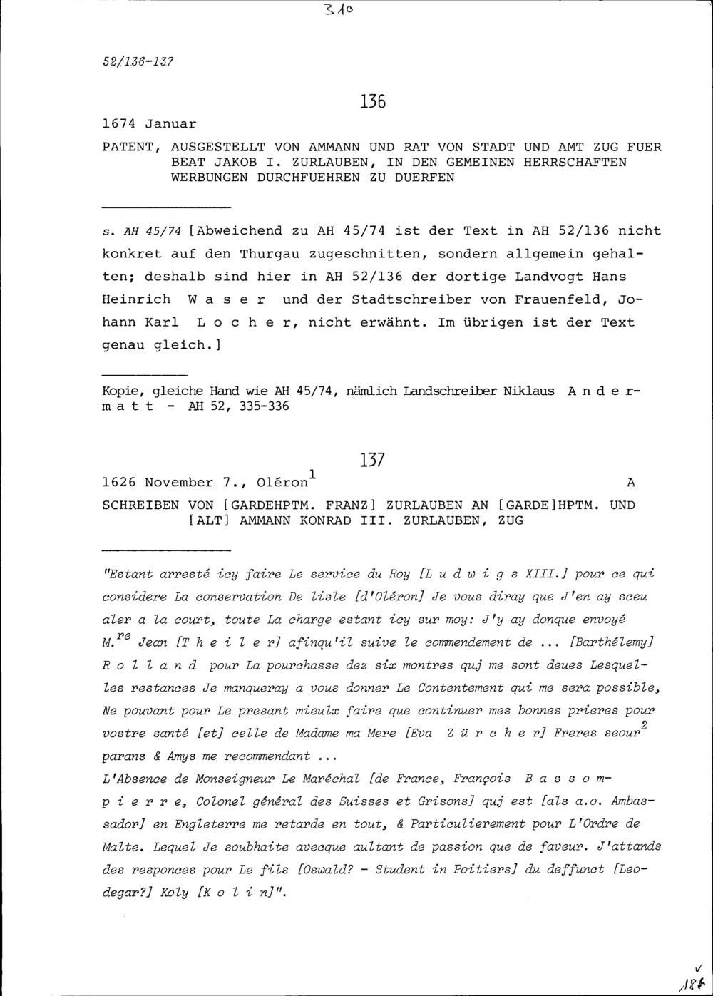Schreiben von Franz Zurlauben, Gardehauptmann, an Konrad III. Zurlauben, Gardehauptmann...