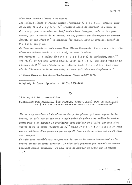 Schreiben von NN Acklin von Mandach, Hauptmann, an Beat Jakob II. Zurlauben, Hauptmann...