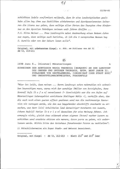 Schreiben von Nivard Lusser, Konventuale und Beichtiger, an Beat Jakob II. Zurlauben, Landvogt im Thurgau und Hauptmann, Frauenfeld