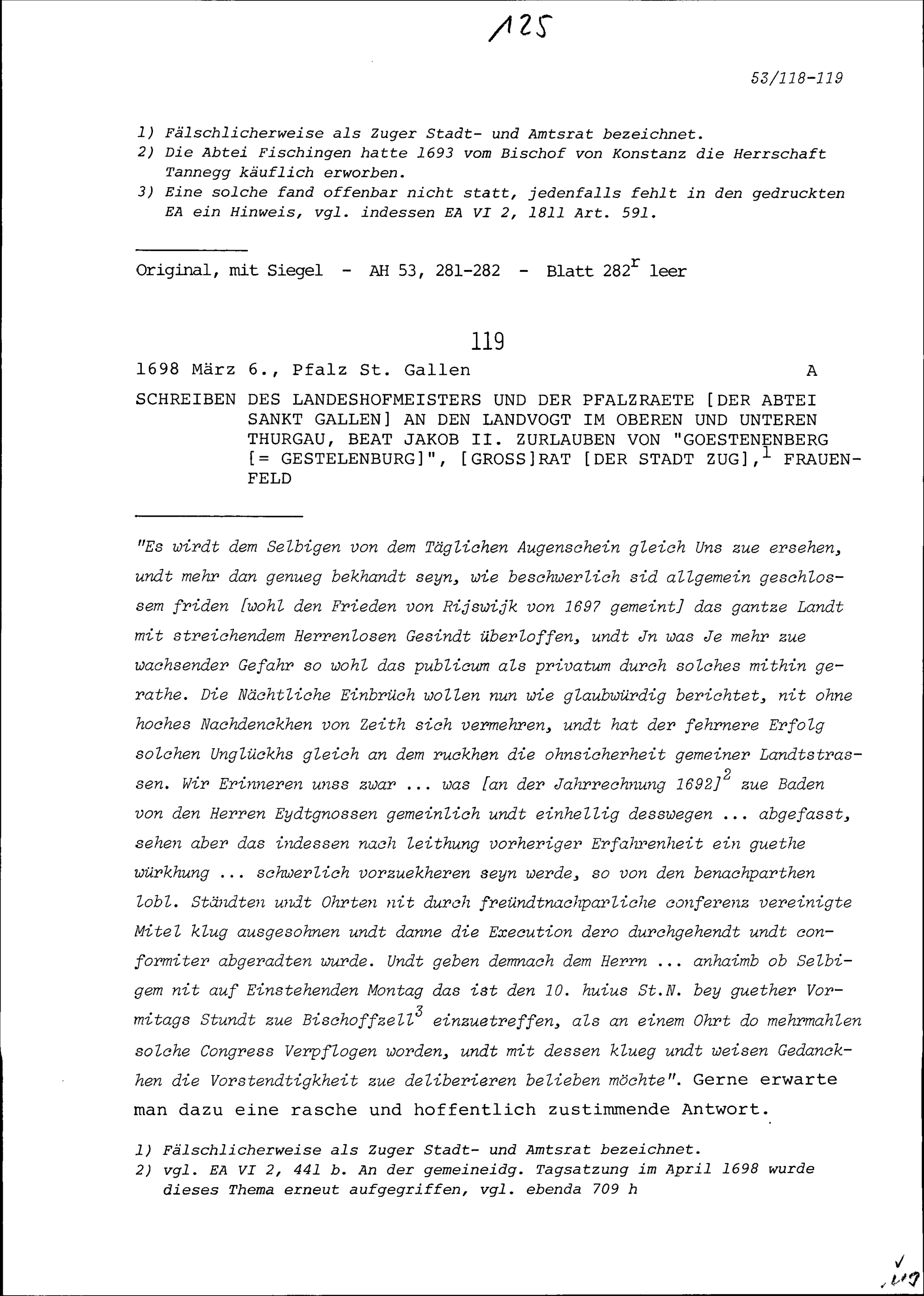Schreiben von Marquard Rudolf Rodt von Bausmannshausen, Bischof von Konstanz, Herr der Reichenau und von Öhningen, an Beat Jakob II. Zurlauben, Landvogt im Oberen und Unteren Thurgau und Hauptmann, Frauenfeld