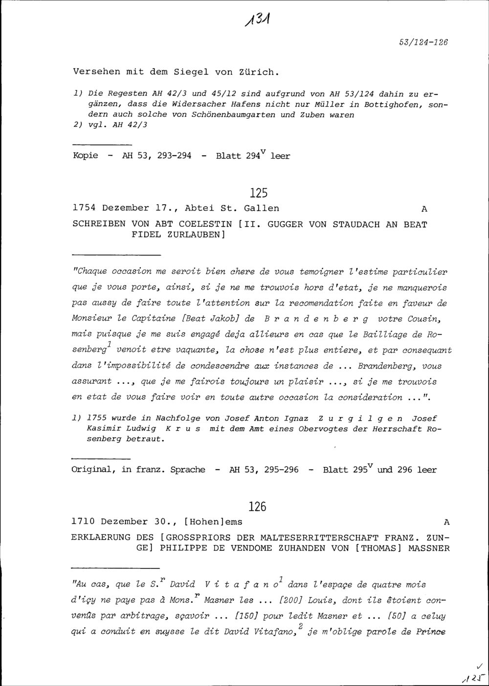 Erklärung von Philippe de Vendôme, Grossprior der Malteserritterschaft französischer Zungen, zuhanden von Thomas Massner