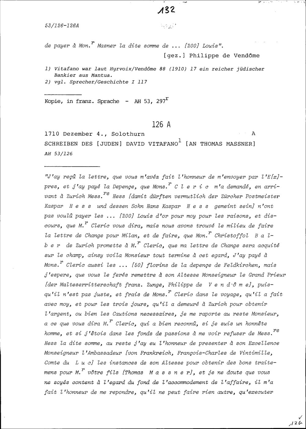 Erklärung von Philippe de Vendôme, Grossprior der Malteserritterschaft französischer Zungen, zuhanden von Thomas Massner
