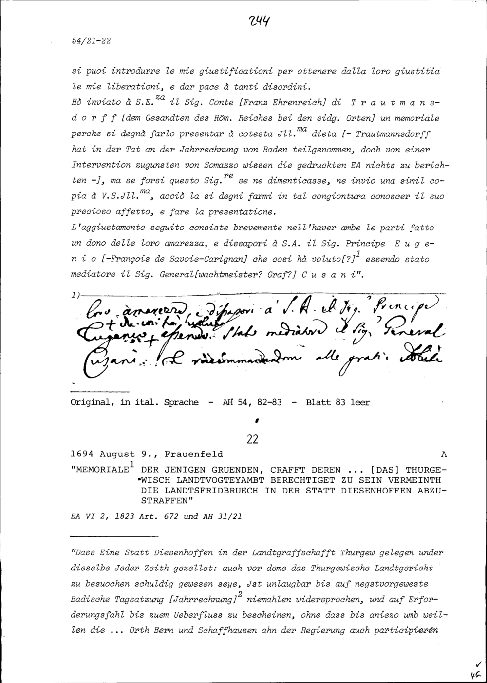 Schreiben von Giovanni Battista Somazzo an Beat Jakob II. Zurlauben, Stadt- und Amtrat...