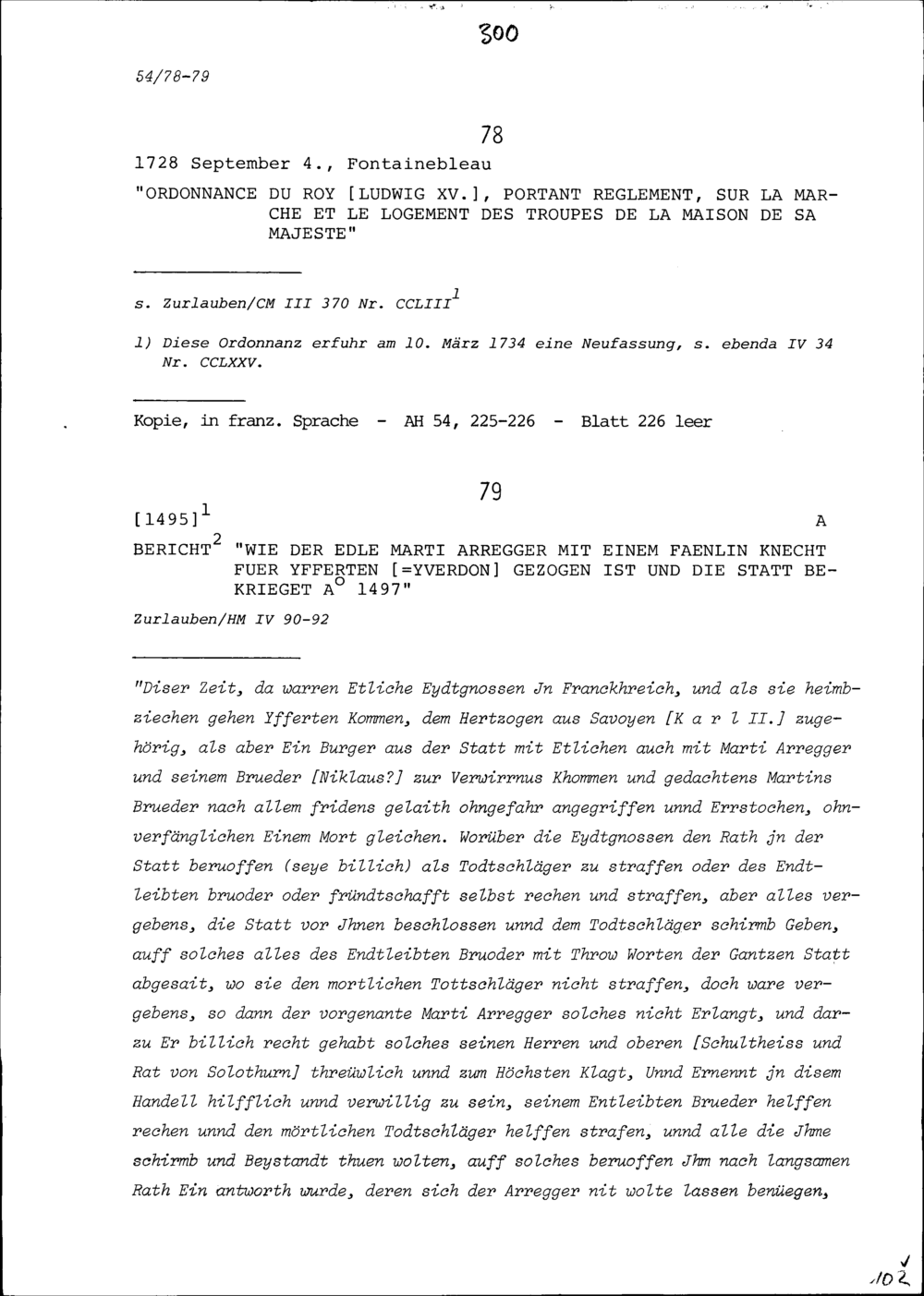 Bericht, wie der edle Martin Aregger mit einem Fähnlein Knechte nach Yfferten (= Yverdon) zog und 1497 die Stadt bekriegte