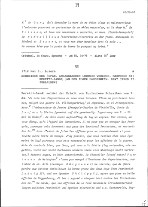 Schreiben von Pierre de Coriolis, Marquis d'Espinouse, an Beat Jakob II. Zurlauben, Zuger Landeshauptmann