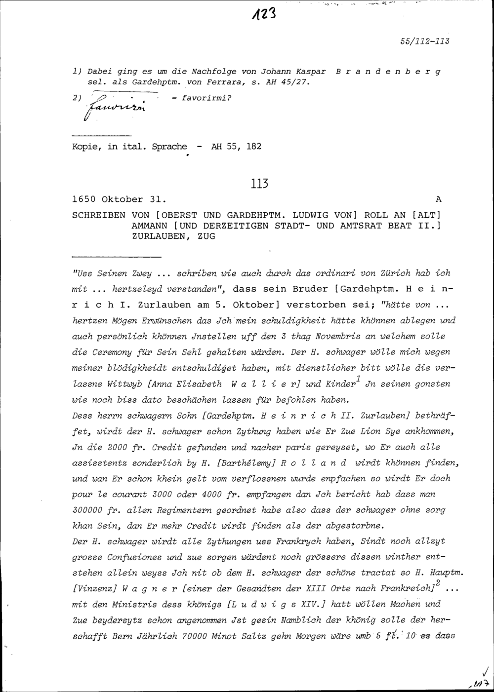Schreiben von Beat Kaspar Zurlauben, Ammann, an Giuseppe Calzolari, Internuntius, Luzern