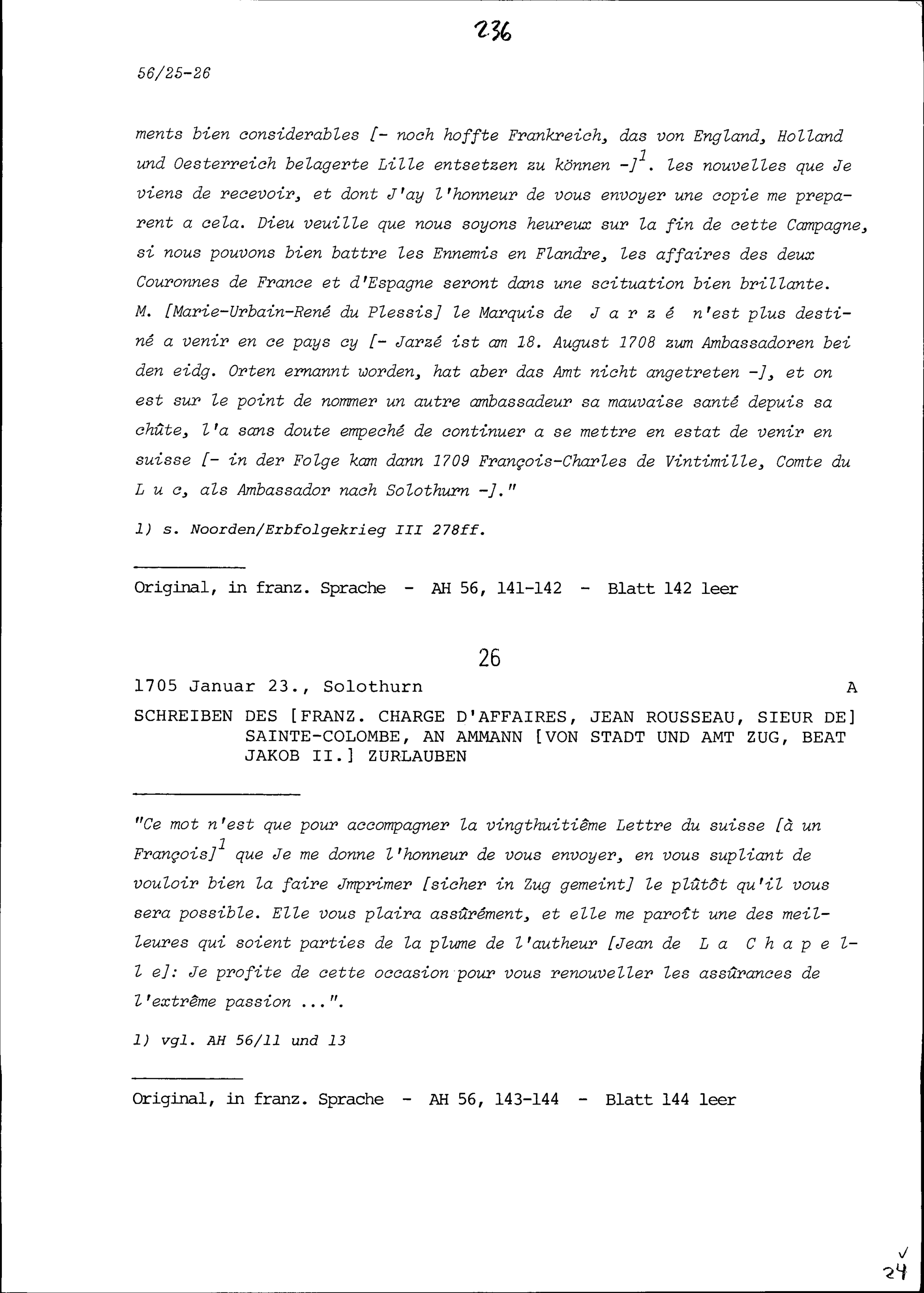 Schreiben von Jean Rousseau, Sieur de Sainte-Colombe, Geschäftsträger von Frankreich, an Beat Jakob II. Zurlauben, Altammann und Stadt- und Amtrat Zug