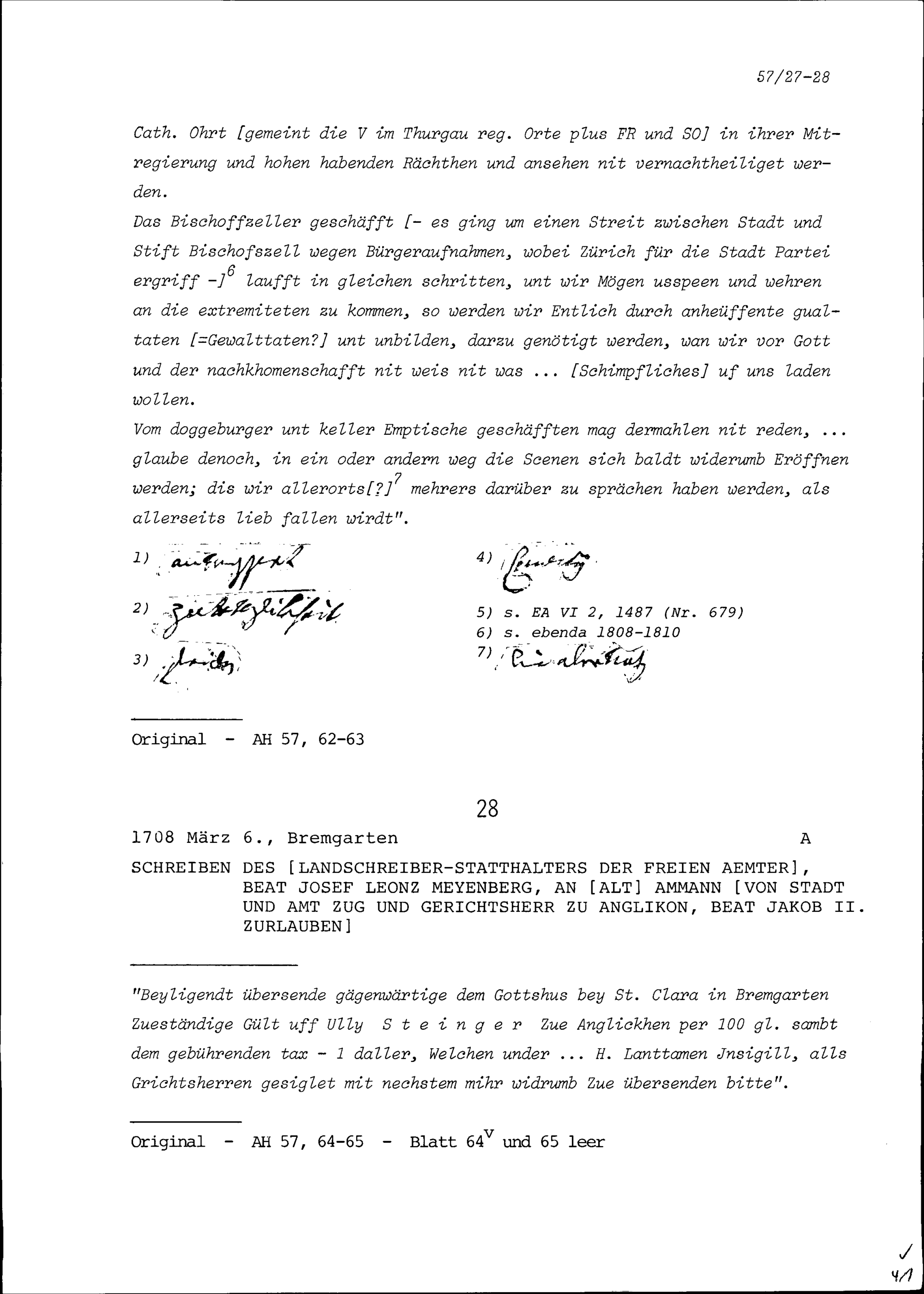 Schreiben von Johann Rudolf Dürler, Schultheiss, an Beat Jakob II. Zurlauben, Altammann...
