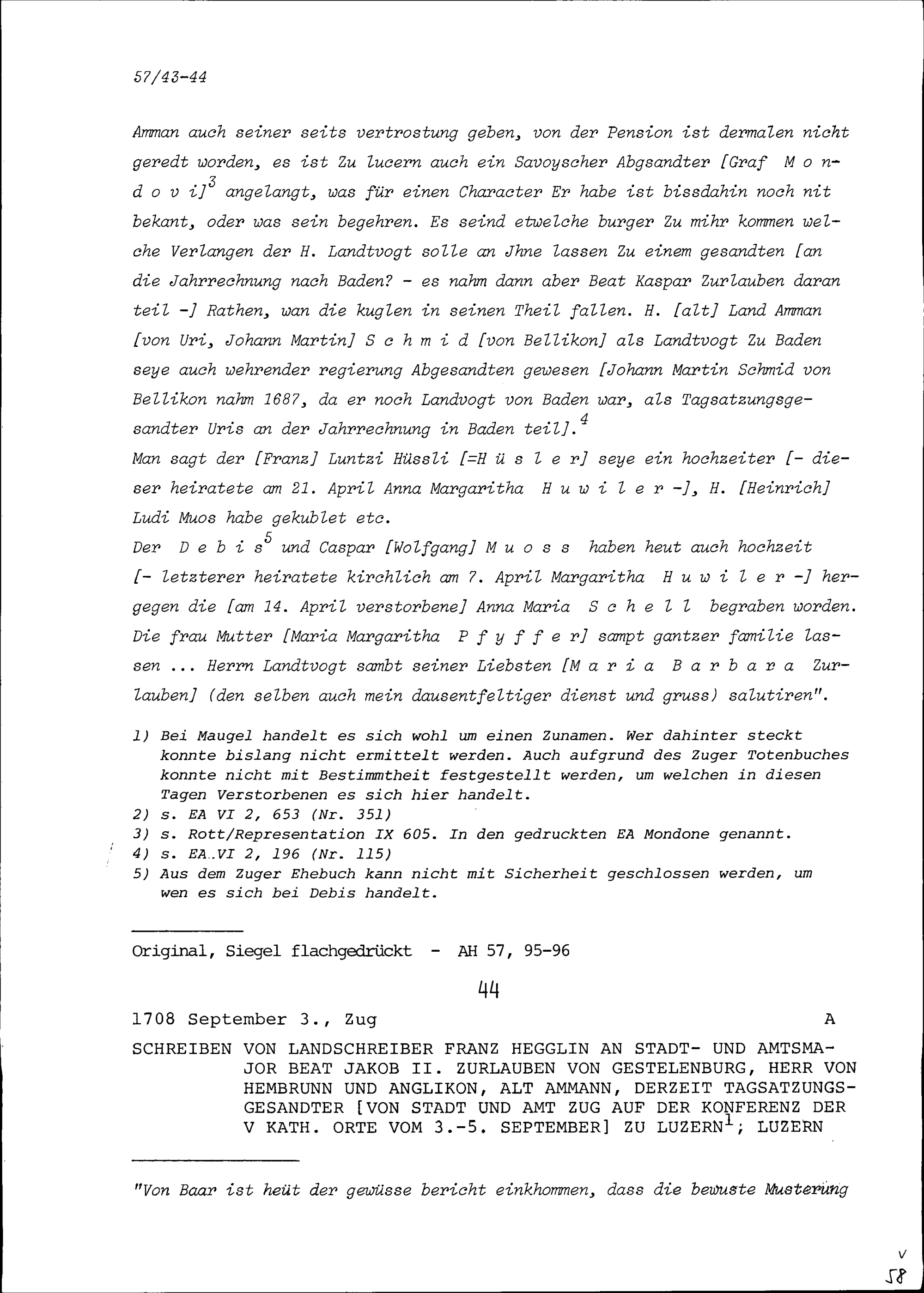 Schreiben von Peter Matthäus Herster, Kaplan der Sakraments- und Rosenkranzpfrund zu Sankt Oswald und ehemaliger Benefiziat an der Sankt Konradspfrund, an Beat Jakob II. Zurlauben, Landvogt im Thurgau und Hauptmann, Major von Stadt und Amt Zug, Frauenfeld