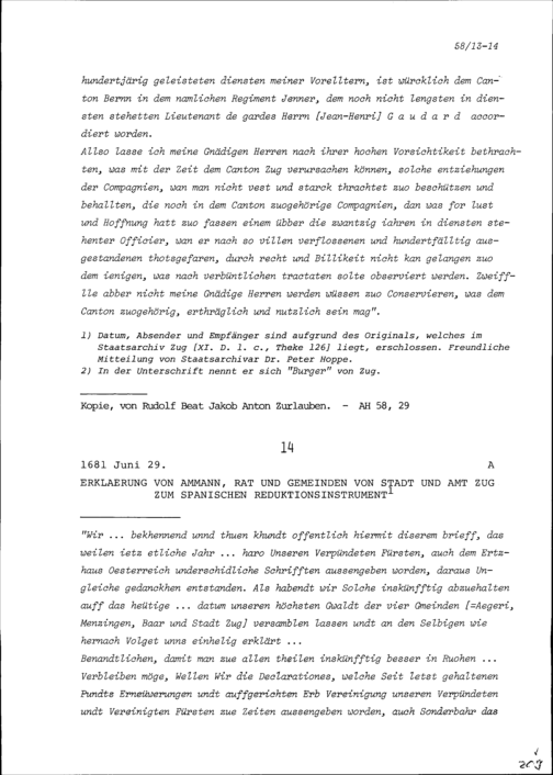 Schreiben von Rudolf Beat Jakob Anton Zurlauben, Hauptmann, an Ammann und Rat von Stadt und Amt Zug