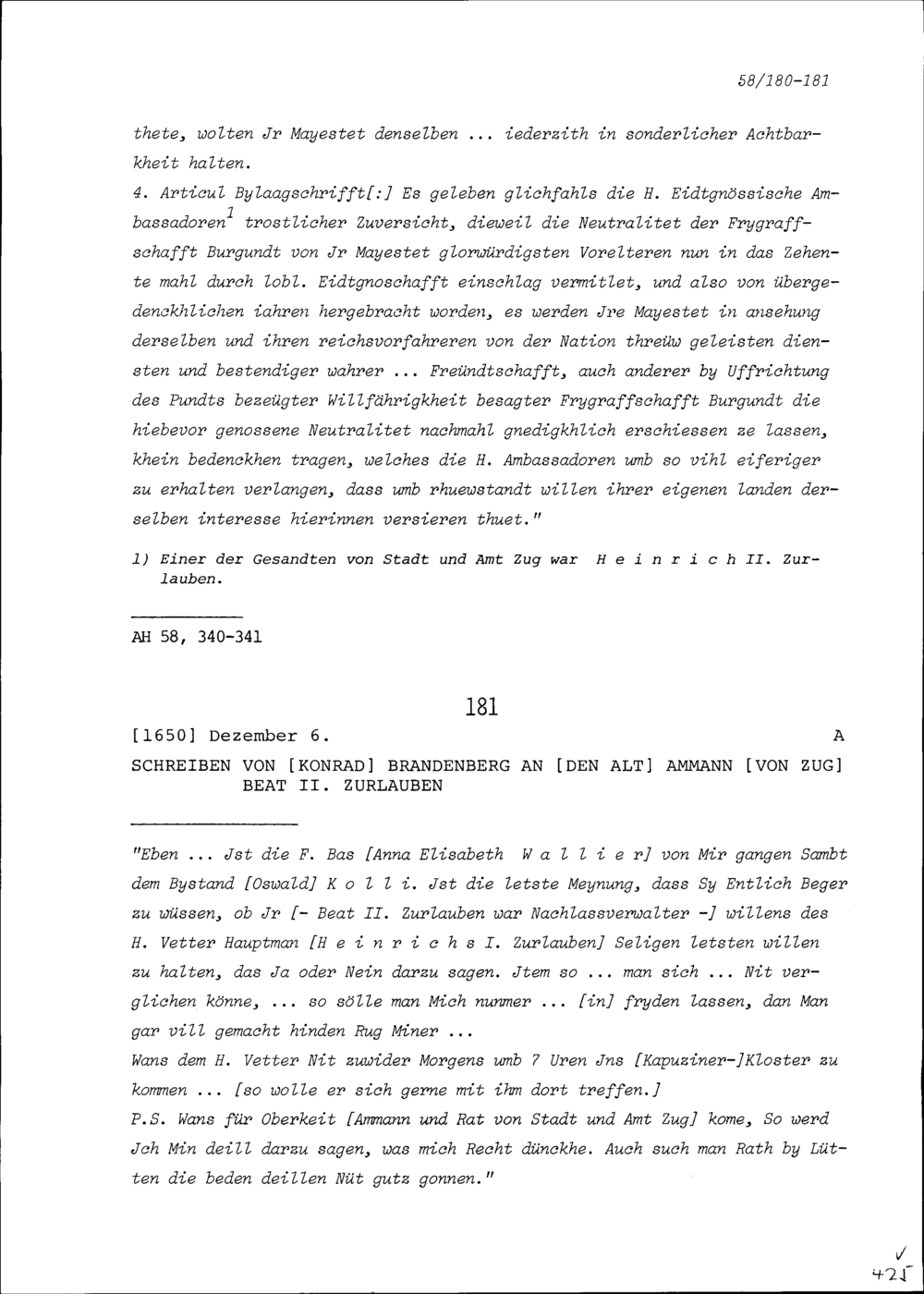 Abschied betreffend der Gesandtschaft der Dreizehn Orte und Zugewandten Orte nach...