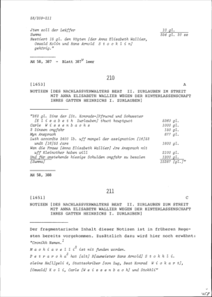 Notiz von Beat II. Zurlauben, Nachlassverwalter, zum Streit mit Anna Elisabeth Wallier wegen der Hinterlassenschaft Heinrich I. Zurlauben