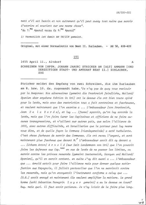 Schreiben von Jean de la Barde, Ambassador von Frankreich, an Beat II. Zurlauben,...