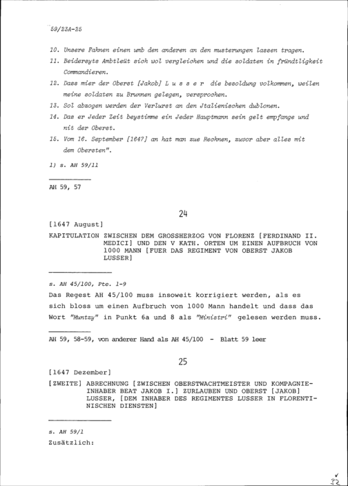 Abrechnung, zweite, zwischen Beat Jakob I. Zurlauben, Oberstwachtmeister und Kompanieinhaber, und Jakob Lusser, Oberst und Inhaber des Regiments Lusser in florentinischen Diensten