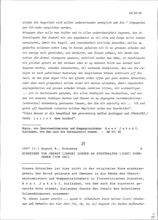 Bittschrift der Hauptleute des Regiments Lusser in florentinischen Diensten an Ferdinand II. Medici, Grossherzog