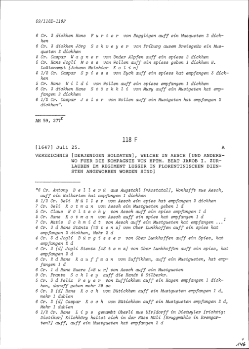 Soldaten, die in Villmergen für die Kompanie von Beat Jakob I. Zurlauben, Hauptmann und im Regiment Lusser in florentinischen Diensten angeworben worden sind