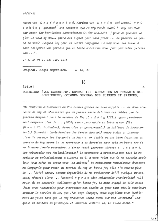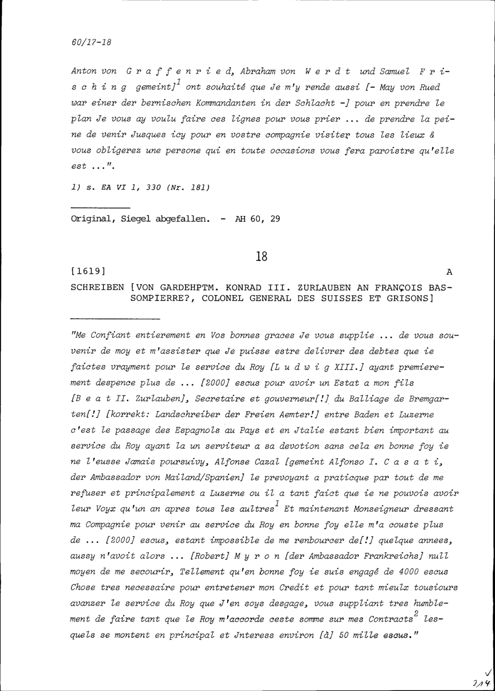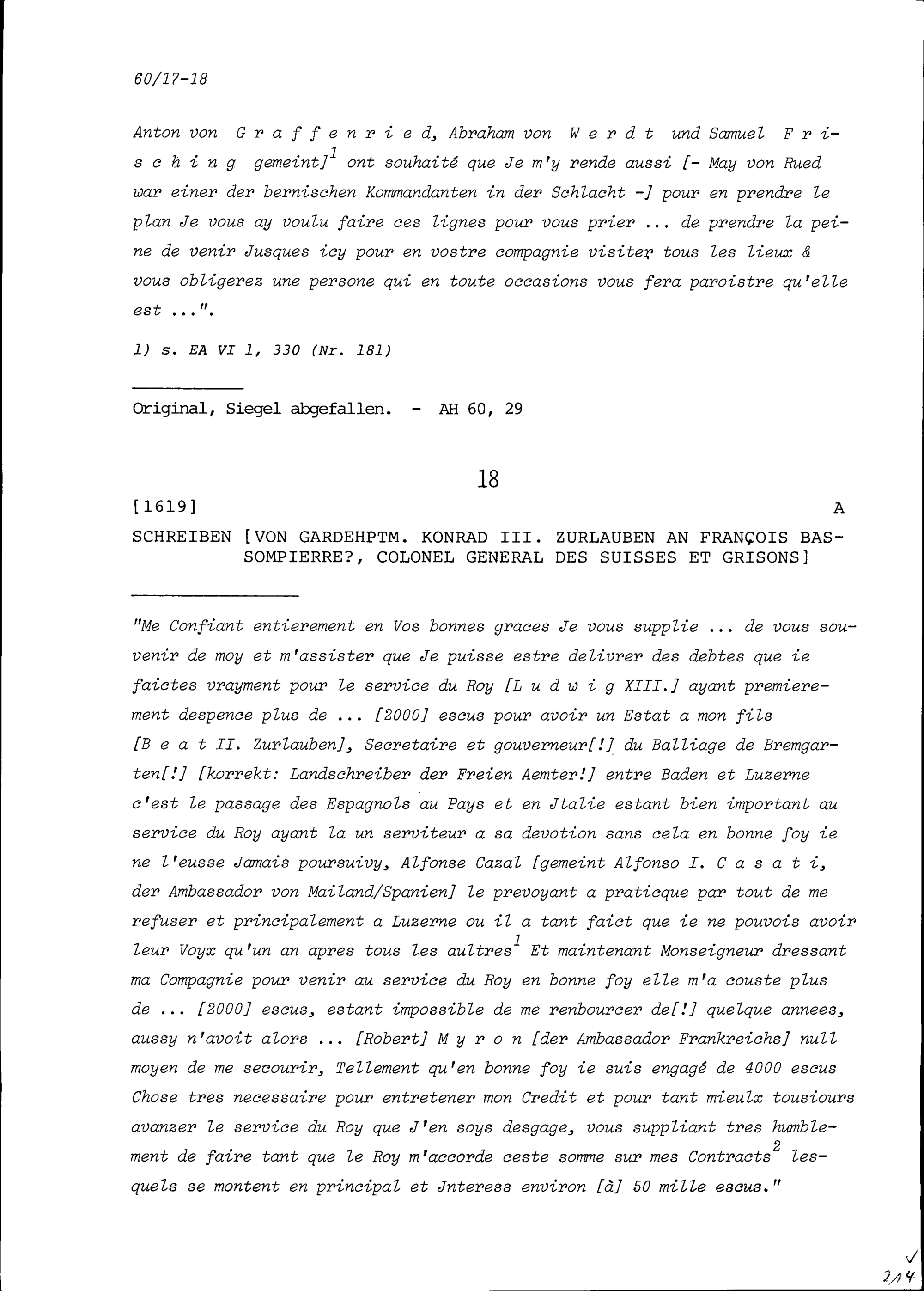 Schreiben von Johann Rudolf May von Rüd an Beat Jakob I. Zurlauben, Landschreiber der Freie Ämter, Bremgarten