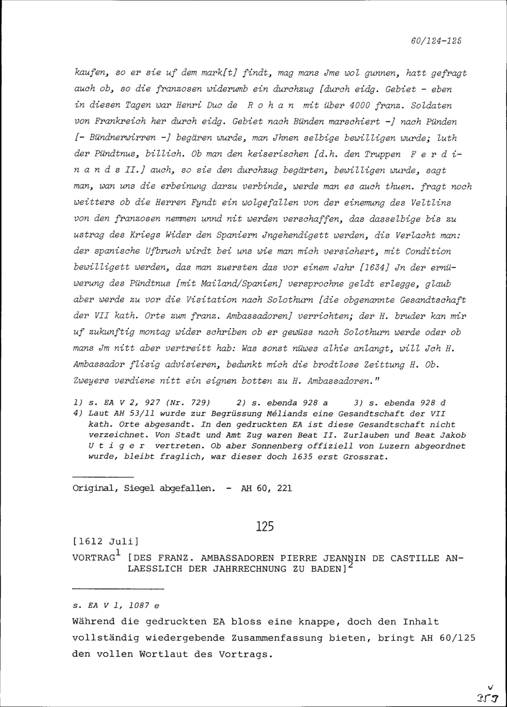 Schreiben von Alfons von Sonnenberg, Gardehauptmann, an Beat II. Zurlauben, Ammann und Gardehauptmann, Zug