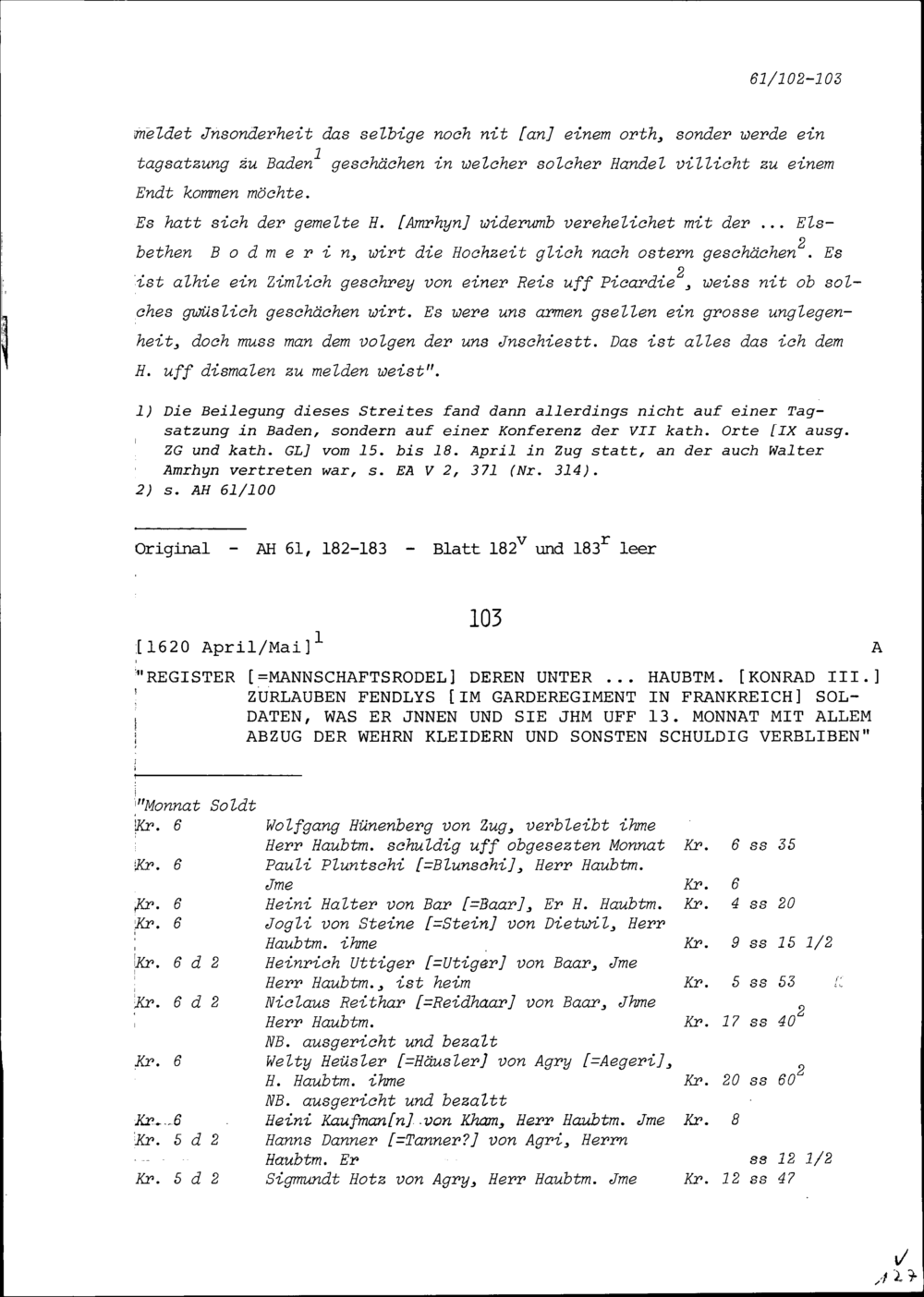 Schreiben von Johann Studer, Feldgeistlicher, an Konrad III. Zurlauben, Gardehauptmann,...