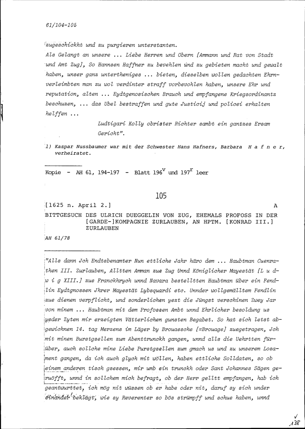 Kundschaftsaufnahmen und Urteil von Leodegar Kolin, Oberstrichter, und Gesamtem Gericht der Gardekompanie von Konrad III. Zurlauben über Hans Hafner, Soldat