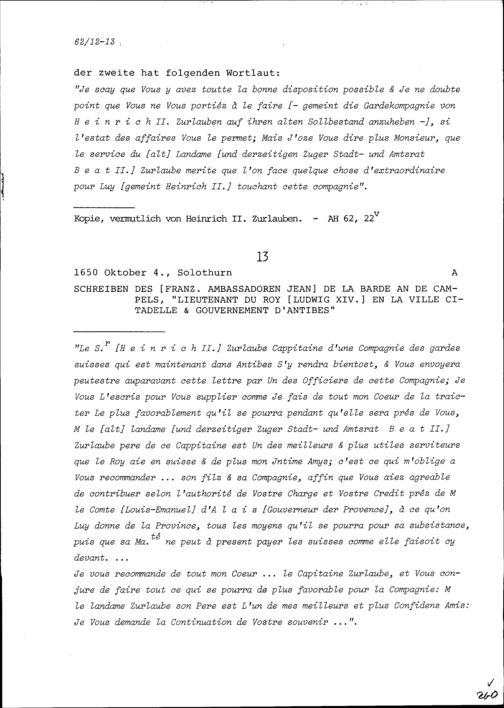 Schreiben von Jean de la Barde, Ambassador von Frankreich, an Karl von Schomberg, Duc d'Hallwin