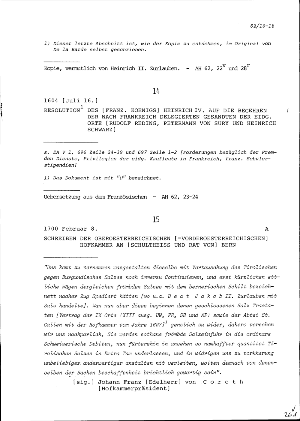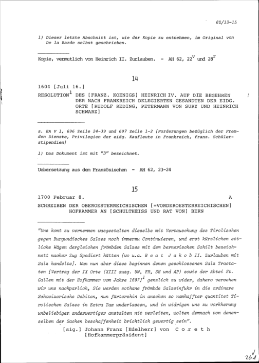 Schreiben der oberösterreichischen (= vorderösterreichischen) Hofkammer an Schultheiss und Rat Bern