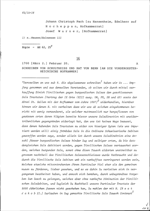 Schreiben der oberösterreichischen (= vorderösterreichischen) Hofkammer an Schultheiss und Rat Bern