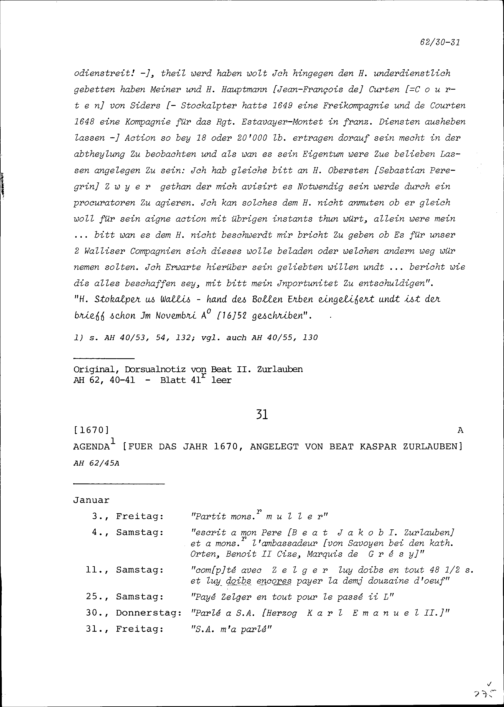 Schreiben von Kaspar Jodok Stockalper, Hauptmann, an Beat II. Zurlauben