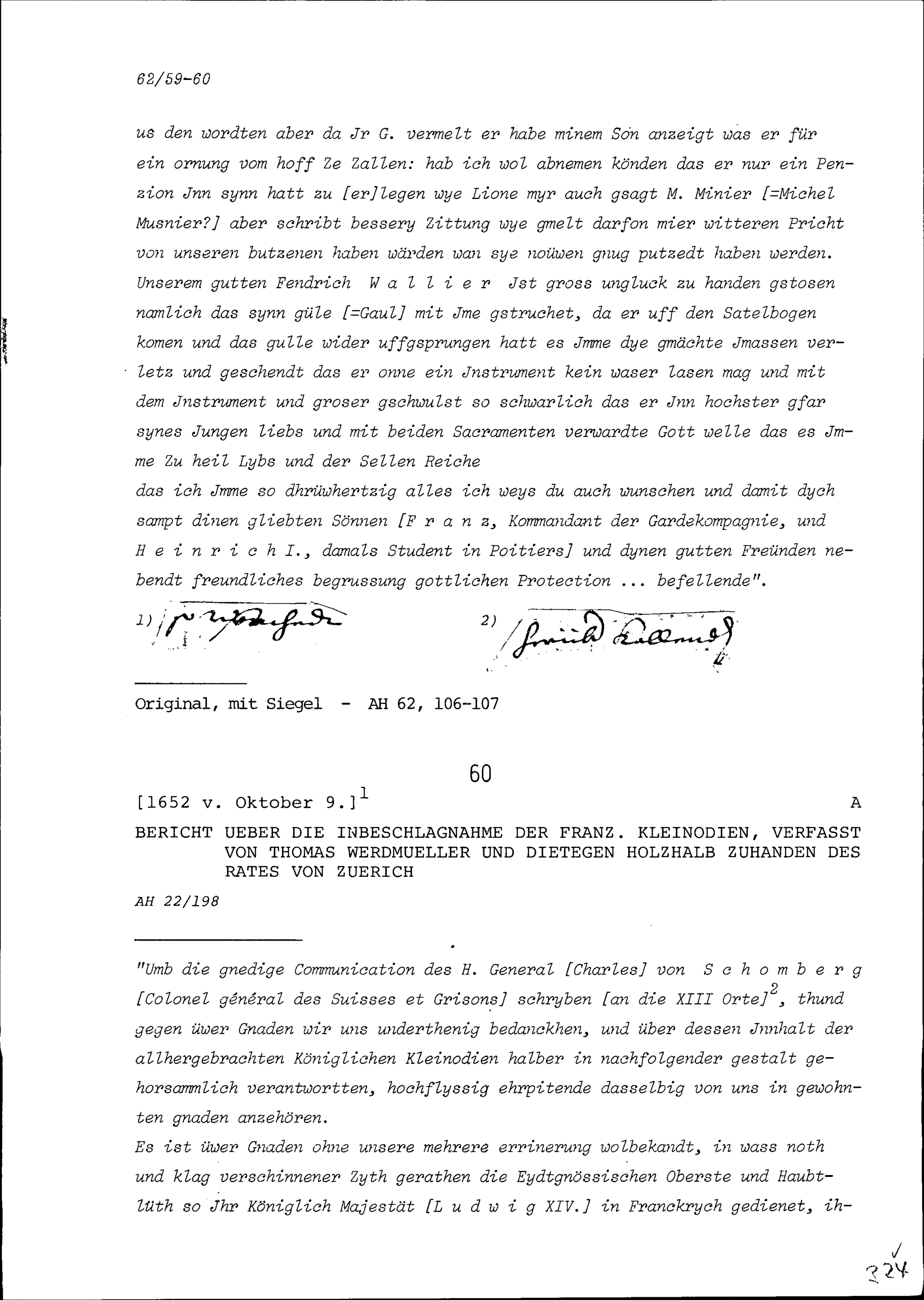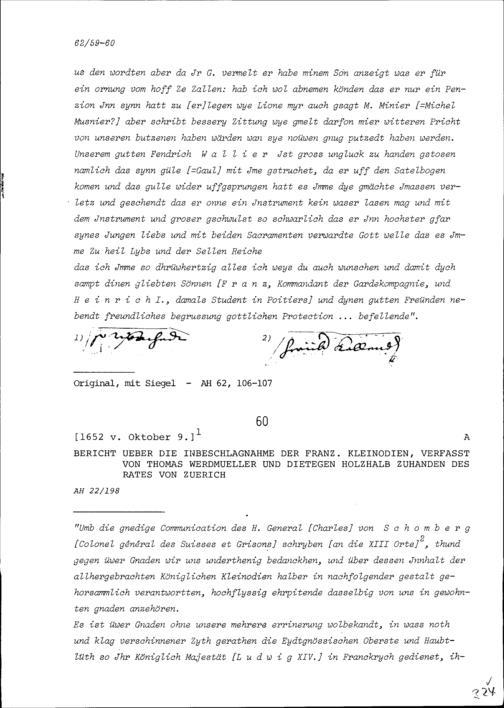 Schreiben von Heinrich Reding, Gardehauptmann, an Konrad III. Zurlauben, Gardehauptmann, Altammann von Zug, Poitiers