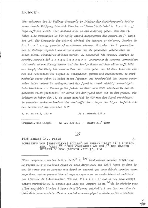 Schreiben von Johann Jakob Stricker, Gardehauptmann, an Beat II. Zurlauben, Hauptmann...