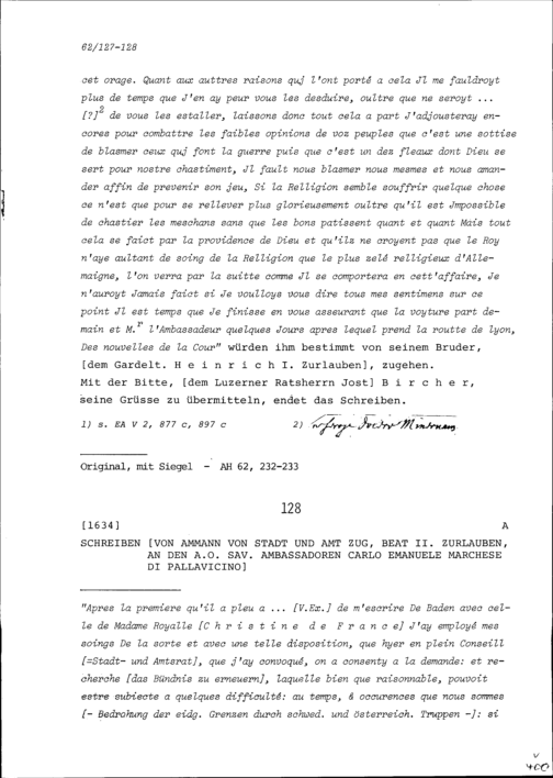 Schreiben von Barthélémy Rolland an Beat II. Zurlauben, Ammann, Zug
