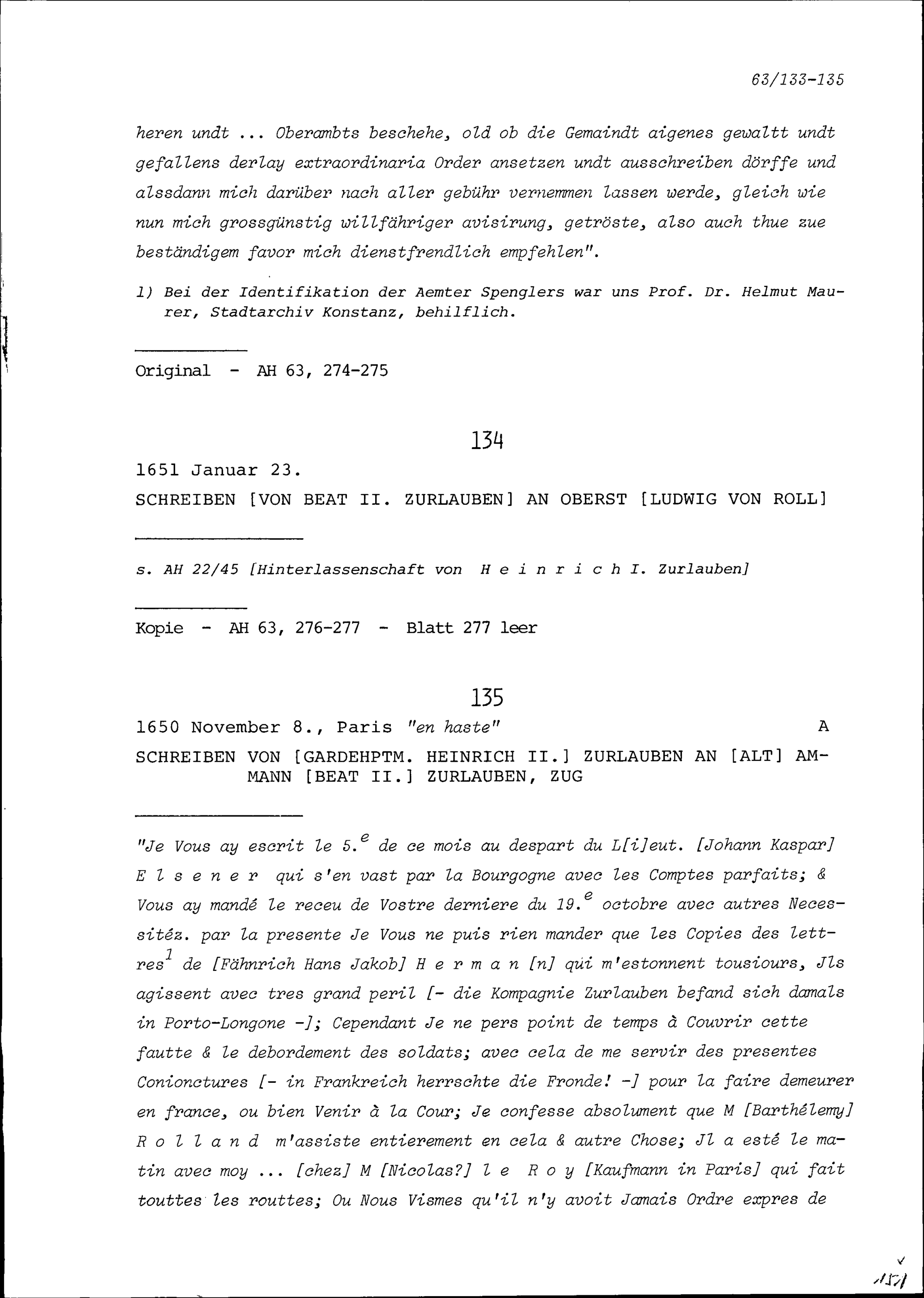 Schreiben von Heinrich II. Zurlauben, Gardehauptmann, an Beat II. Zurlauben, Altammann, Zug