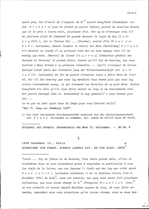 Schreiben von Heinrich I. Zurlauben, Gardeleutnant, an Beat II. Zurlauben, Stadt- und Amtrat, Zug