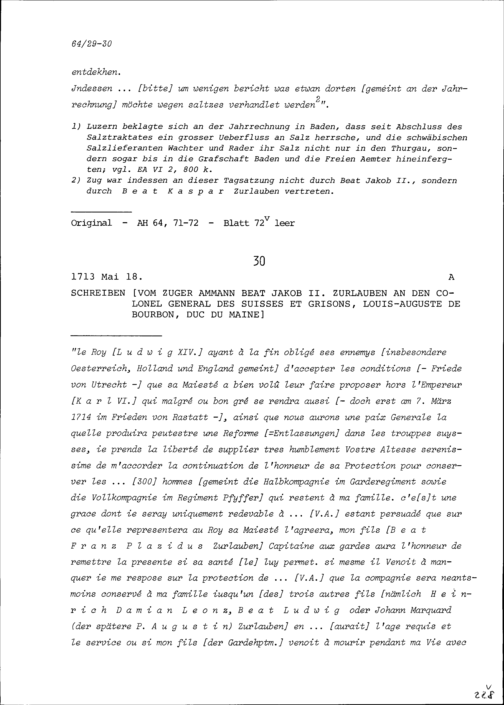 Schreiben von Leodegar Keller, Luzerner Salzdirektor, an Beat Jakob II. Zurlauben, Landvogt der Freien Ämter