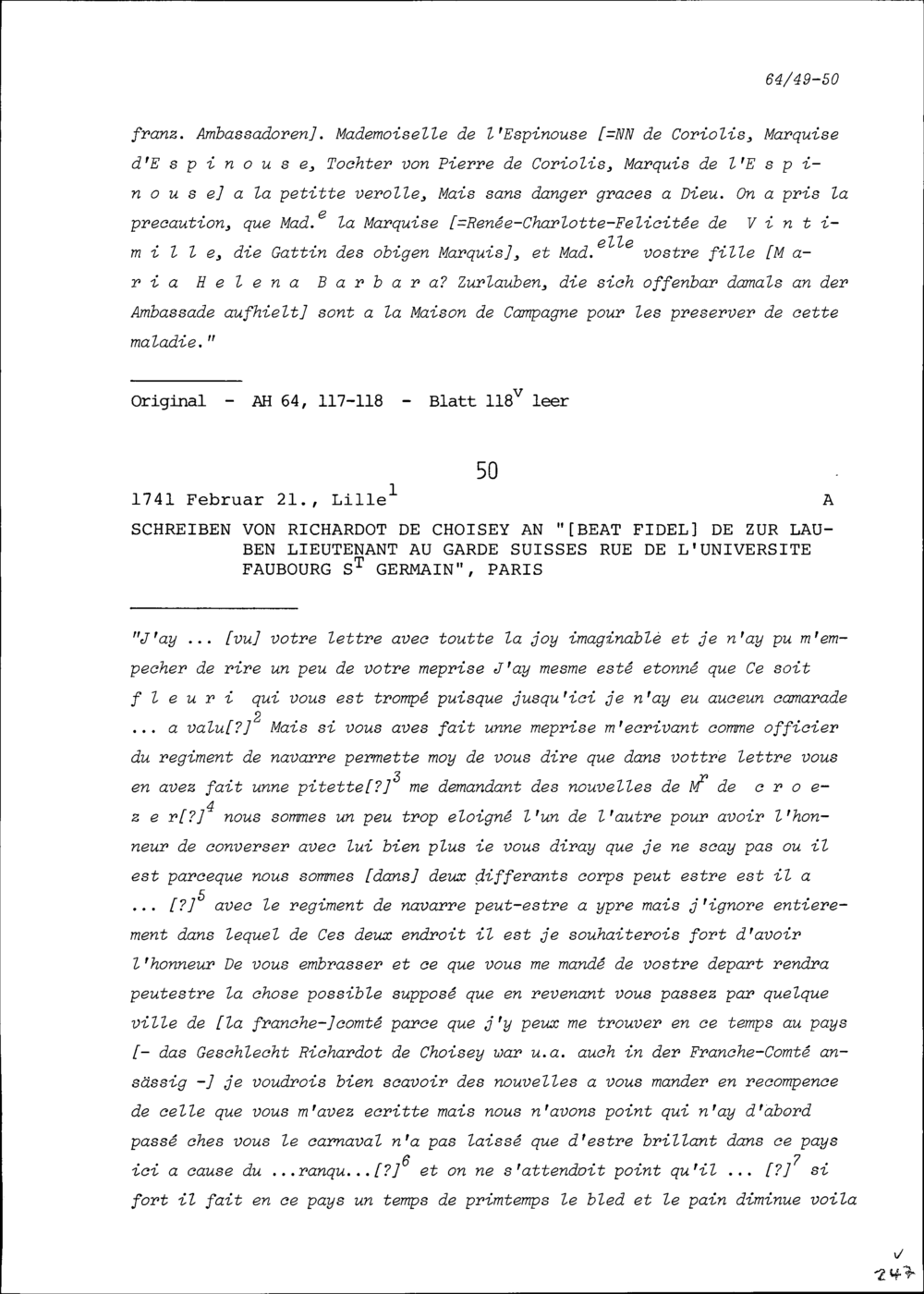 Schreiben von Lorenzo Verzuso, Marchese di Beretti-Landi, Ambassador von Spanien, an Beat Jakob II. Zurlauben, Stadt- und Amtrat Zug