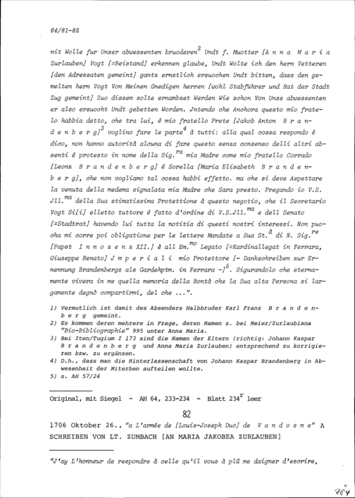 Schreiben von Beat Josef Brandenberg, Gardehauptmann, an Beat Kaspar Zurlauben, Ammann, Zug