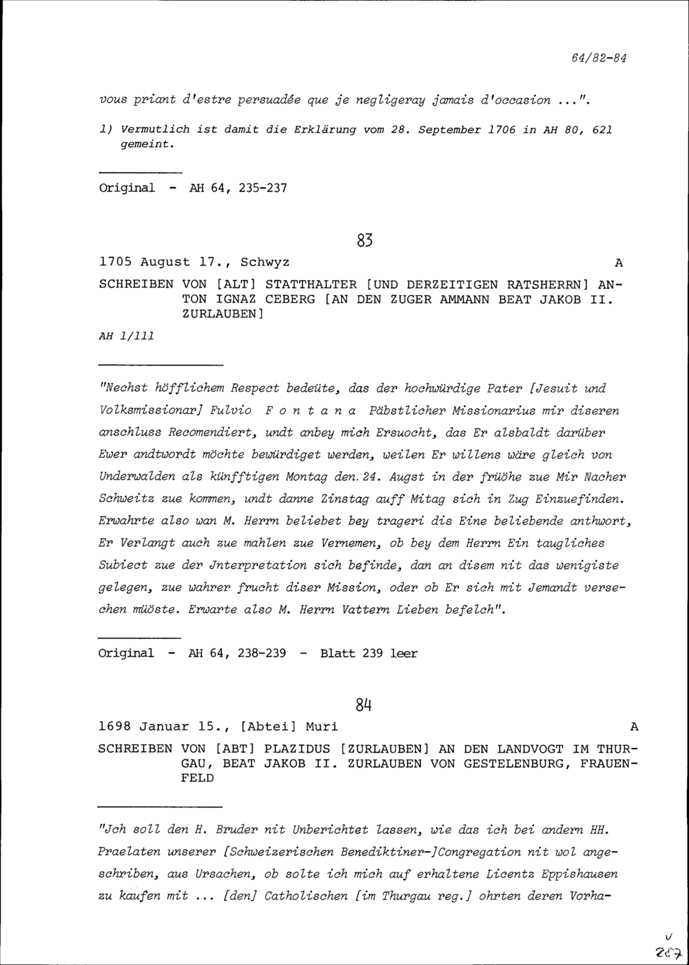 Schreiben von Wolfgang Anton Zumbach, Leutnant, an Maria Jakobea Zurlauben