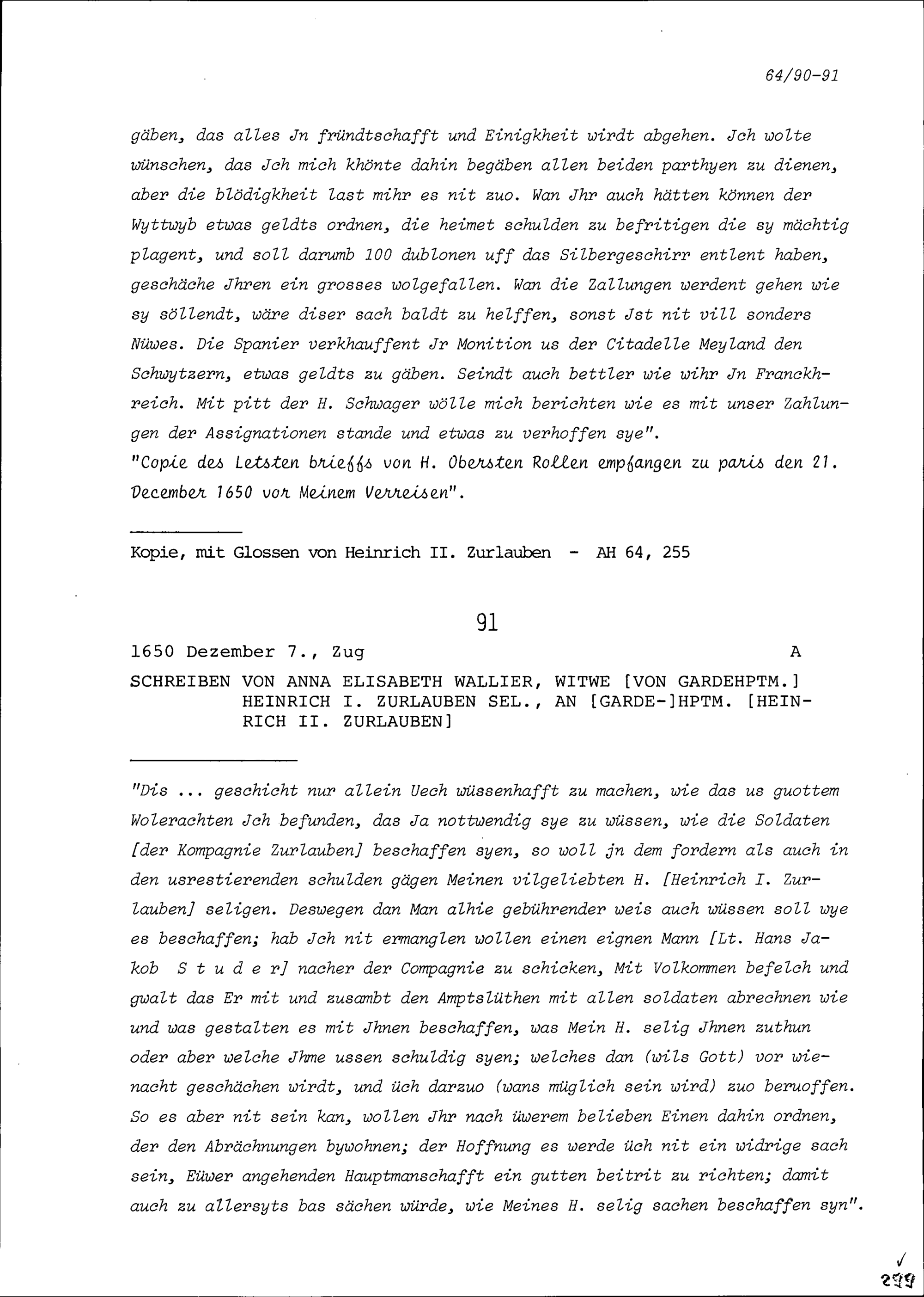 Schreiben von Ludwig von Roll, Oberst, an Heinrich II. Zurlauben, Gardehauptmann