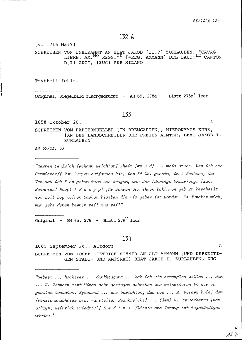 Schreiben von Josef Dietrich Schmid an Beat Jakob I. Zurlauben, Altammann und Stadt-...