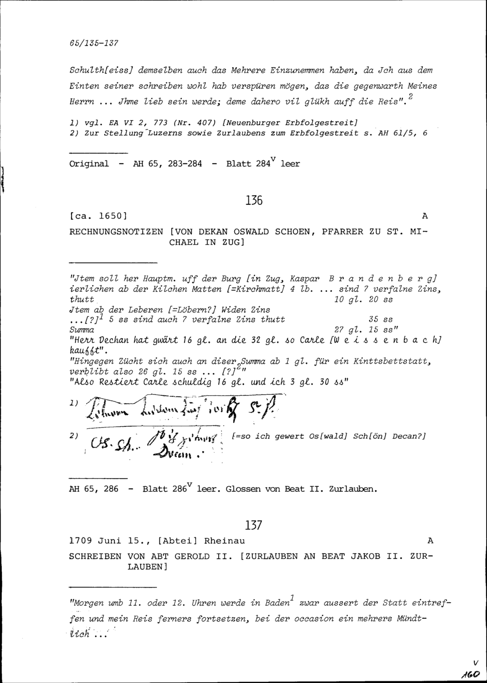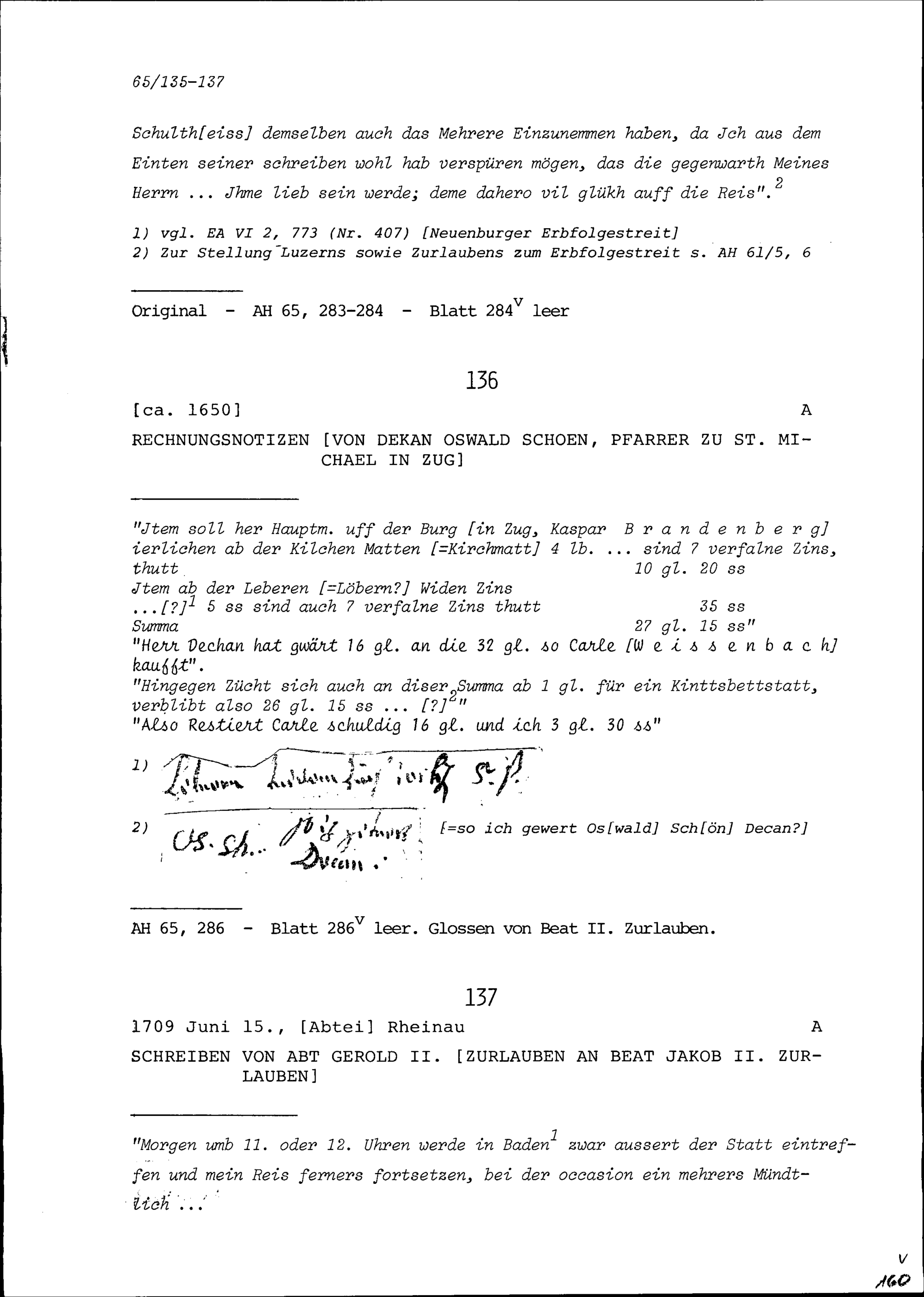 Schreiben von Johann Karl Balthasar, Stadtschreiber, an Beat Jakob II. Zurlauben