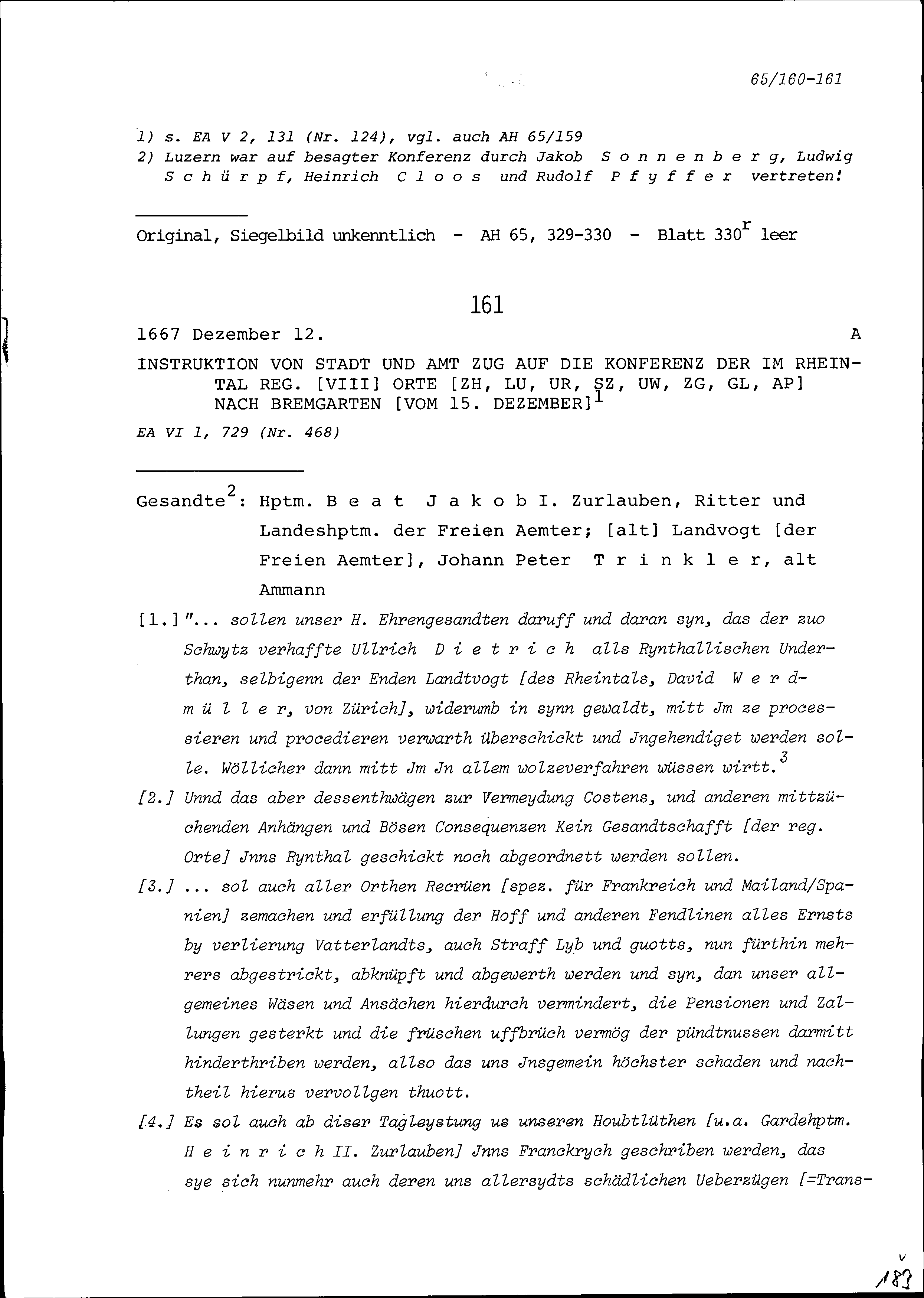 Schreiben von Robert Miron, Ambassador von Frankreich, an Konrad III. Zurlauben, Altammann und Stadt- und Amtrat, Zug