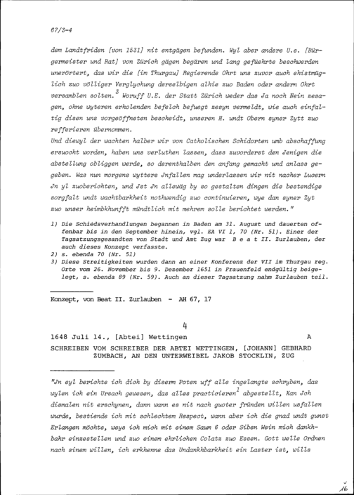 Schreiben der Tagsatzungsgesandten an den Schiedsverhandlungen der Fünf Katholischen...